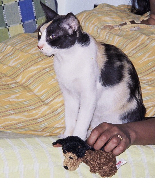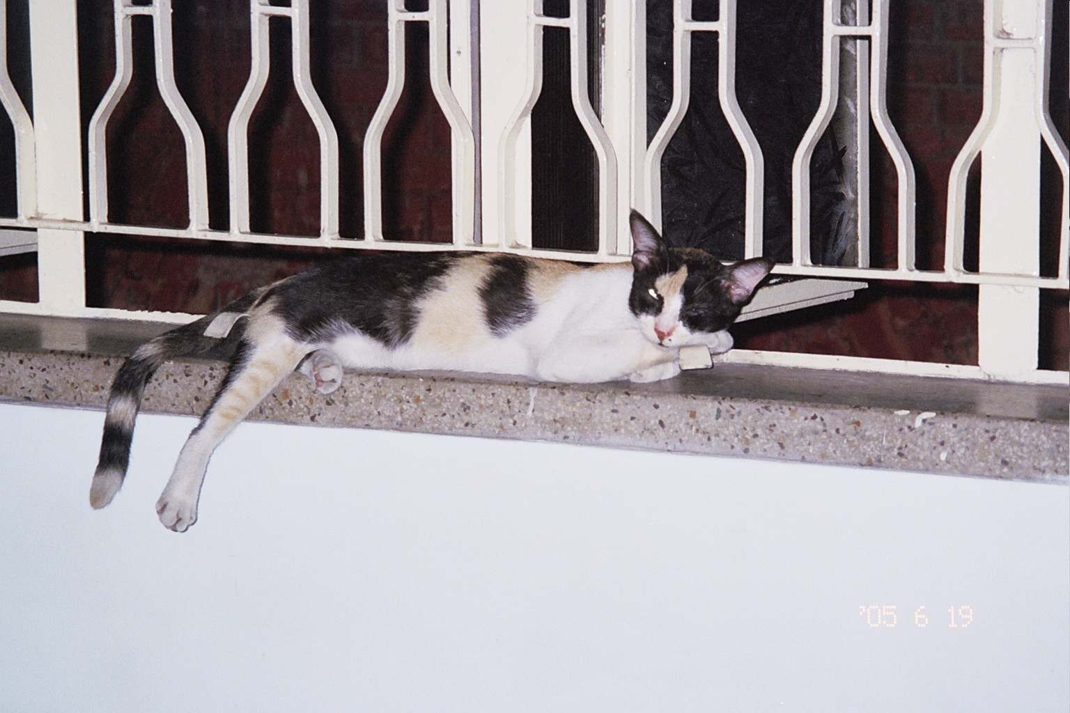 Kalu had black, fawn and white colour on her body, she was always a little plump as she loved her food, her share of fish and rice, which she would relish. long after the cunning Lalu has finished her share, Kalu would sit and finish every little morsel of rice and fish and all the little pieces of catchow lying around.