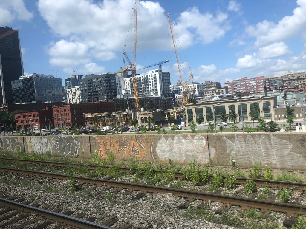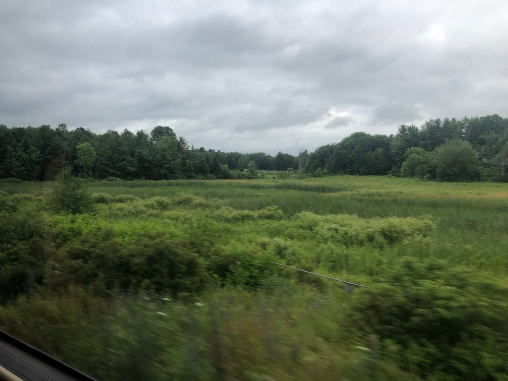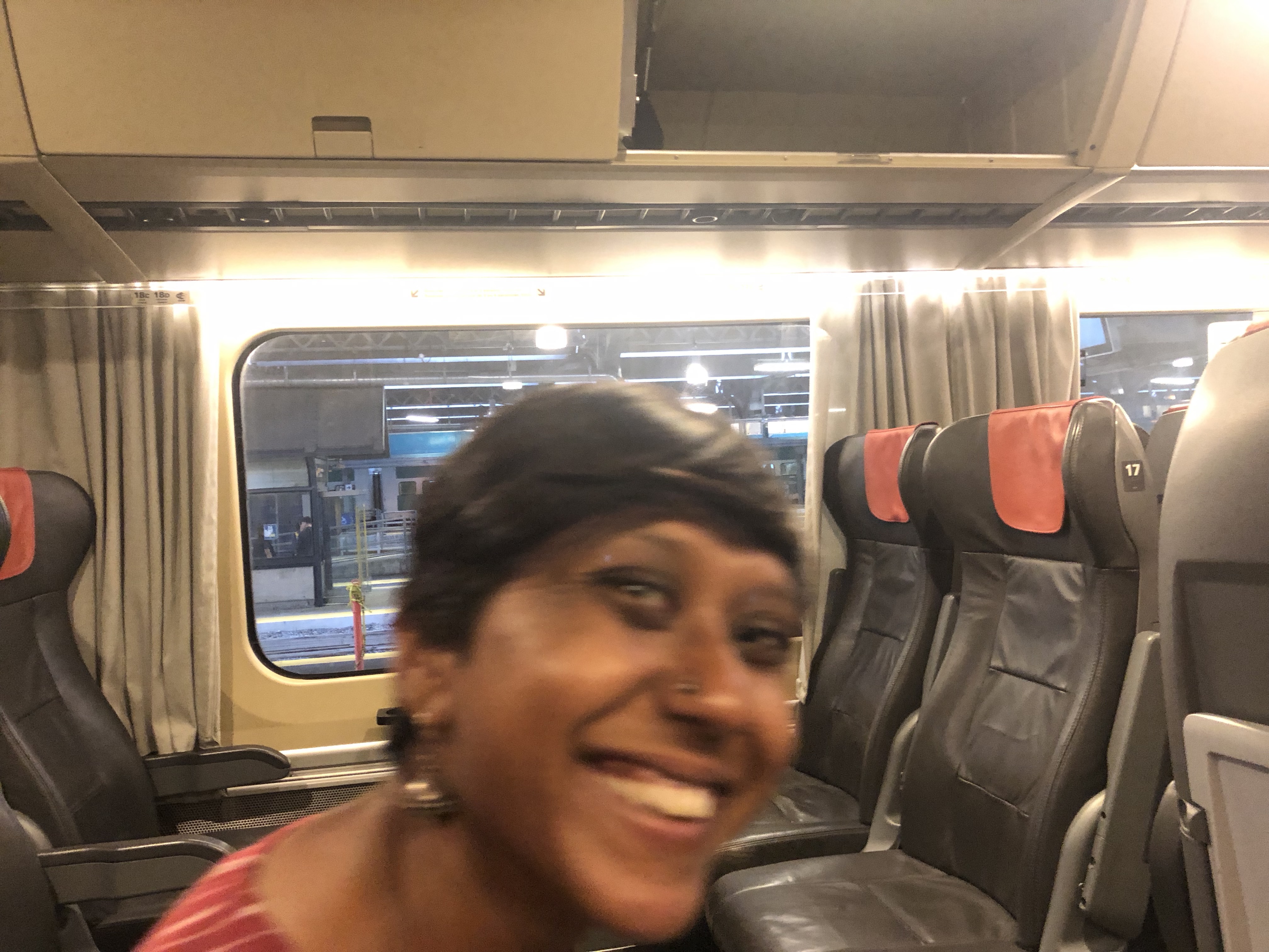 We were enjoying the train journey, coffee, croissant, crackers and hummus added to the enjoyment … The countryside is lush green with some farm houses and fields interspersed with small forests… some factories … stations came and went … the train was running one hour late … felt delighted that it happens here too … that too after charging us a lot of CAD.