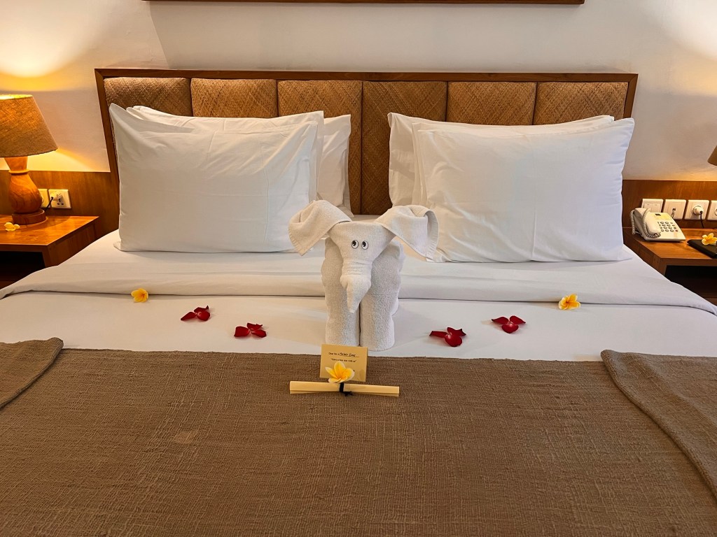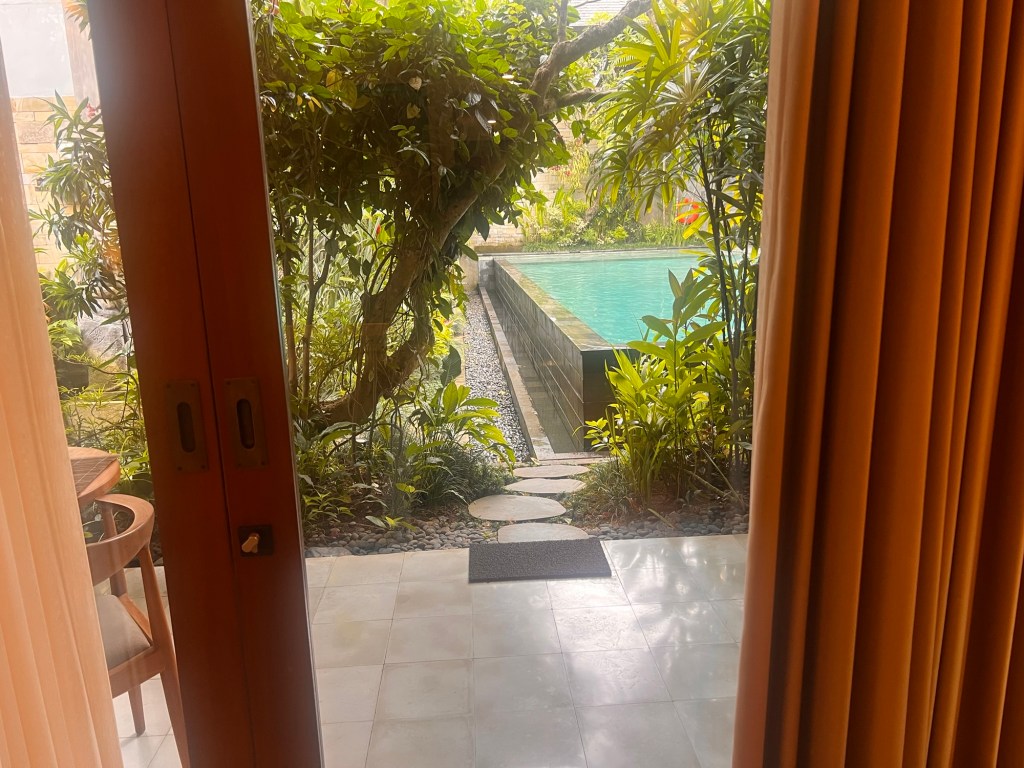 The hotel where we are staying is beautiful and is very eco friendly. It seamlessly integrates eco-friendly practices throughout its beautiful design, creating a serene retreat that honors Bali’s lush landscape while treading lightly upon